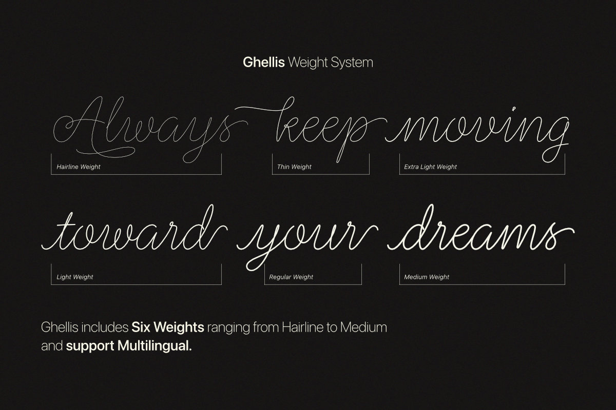 An Elegant Monoline Script Family With Six Refined Weights Perfect For Luxury Branding, Wedding Invitations, And Sophisticated Typography.